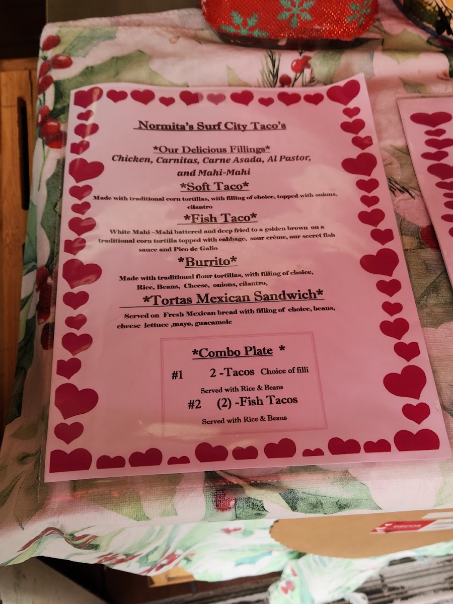 Normita's Surf City Taco Menu